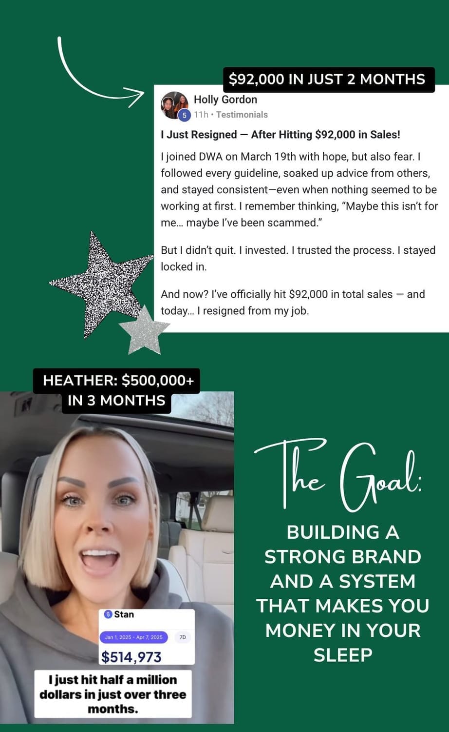 In DWA + my mentorship you will learn how to brand yourself and sell done-for-you products and make BIG money!